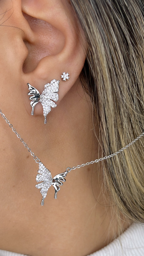 نیم ست جواهری طرح پروانه نگین دار