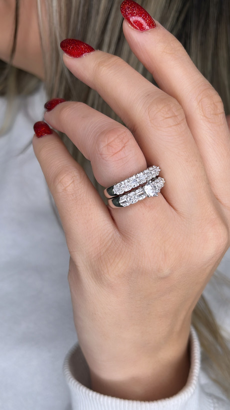 حلقه وپشت حلقه جواهری نقره