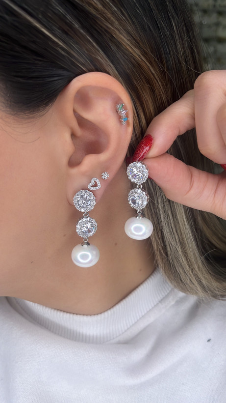 گوشواره طرح جواهر دونگین و مروارید آویز