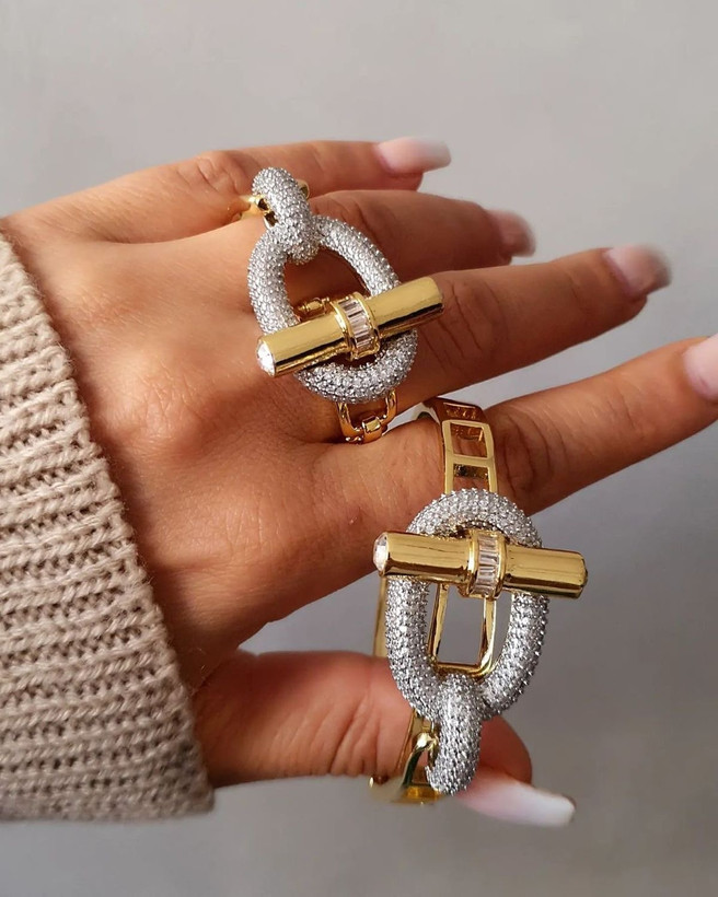 ابکاری طلا با نگین مخراج شده تا دور مچ ۱۹ قابل استفاده است انگشتر فری سایز