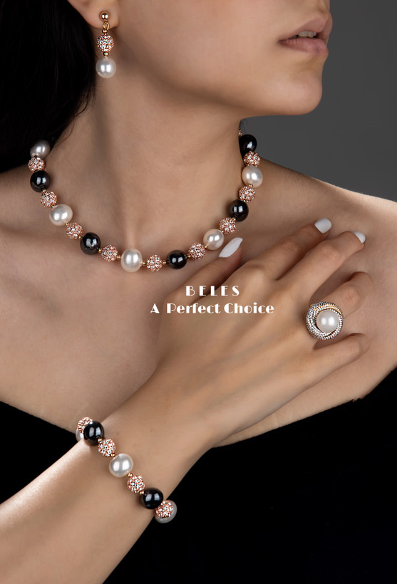 مشاهده محصولات مرتبطسرویس کامل مروارید شامل گردنبند دستبند وگوشواره مروارید پرورشی با گوی جواهری نگین مخراج شده
